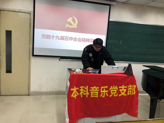 本科音乐党支部在音乐系音专2教室开展“深入学习十九届五中全会精神”主题党日活动。会议由王琦同志主持,孙允同志带领支部同志深入学习。